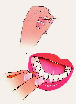Tandenstoker: bij grotere tussenruimten gebruik je een tandenstoker.